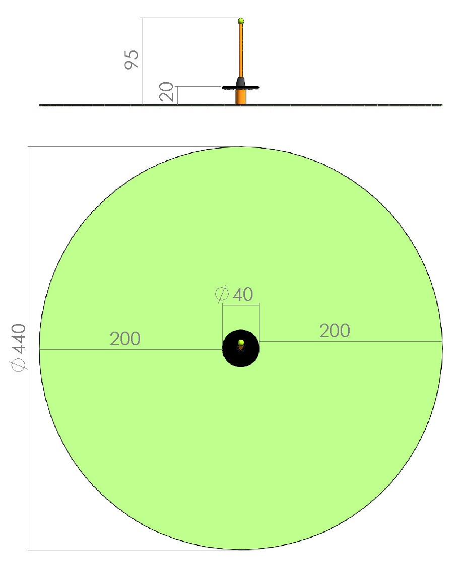 Допустими настилки за зоната на падане: трева, пясък, синтетична ударопоглъщаща настилка – 20 мм