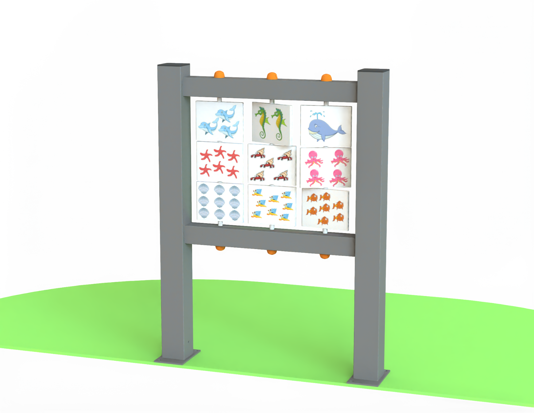 Образователна игра за най-малките, която помага за усвояване на цифрите. От едната страна на въртящите се паралелепипеди са изписани цифри, а от противоположната страна се намират съответстващият им брой животни.