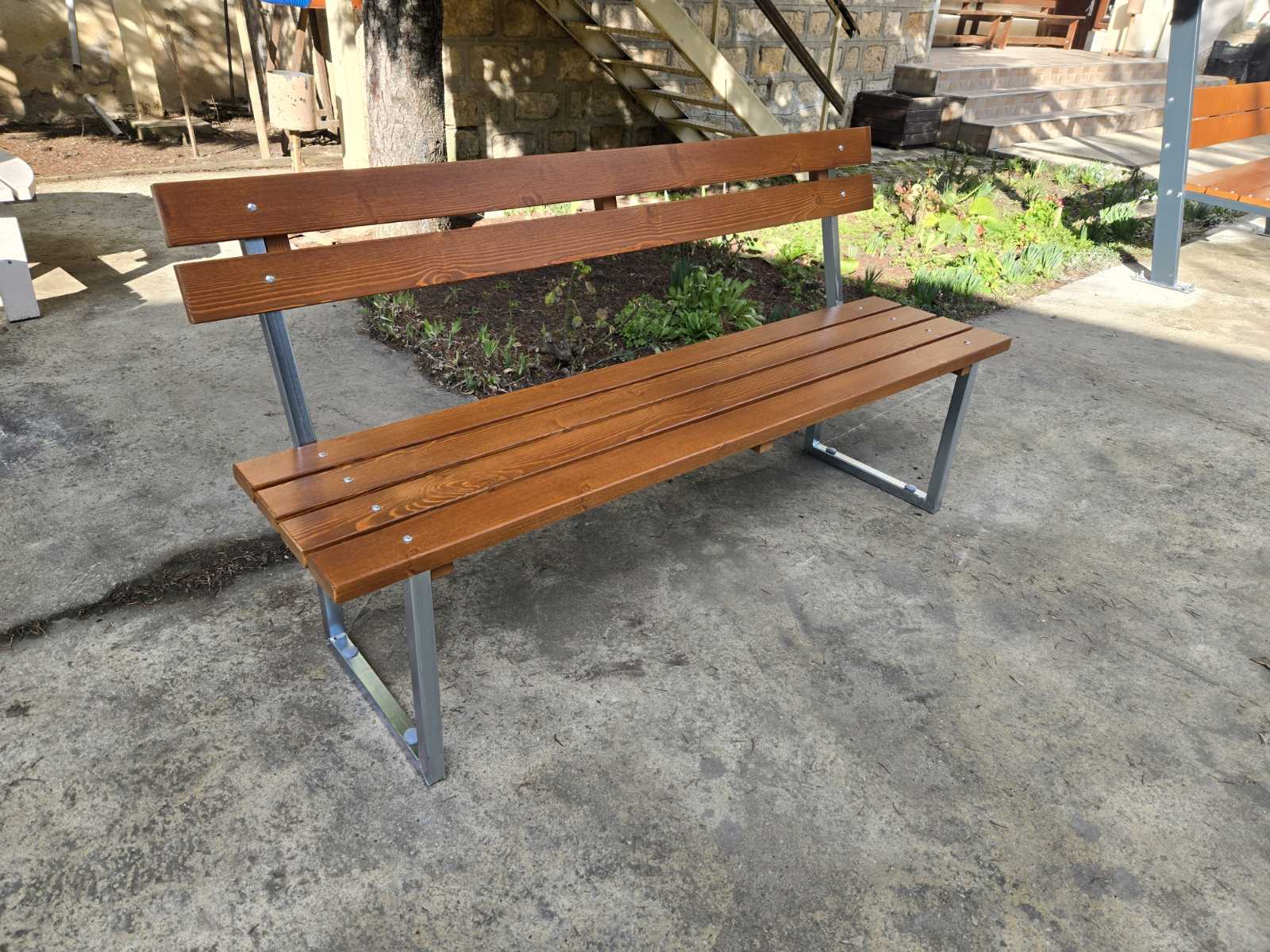 Паркова пейка с метална конструкция за монтаж чрез фундиране.